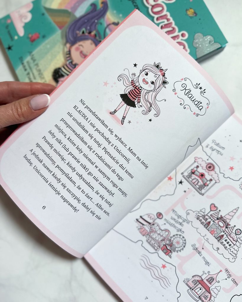 Czy to już daje Wam obraz tej niezwykłej krainy? A teraz najlepsze! Do Unicornii trafia „zwykła” dziewczynka! Ma na imię Klaudia i jeszcze kilka tygodni wcześniej nie miała pojęcia, że jednorożce istnieją naprawdę. Gdy jej rodzina przeprowadza się w to owiane tajemnicą miejsce, dziewczynka jest zachwycona! Okazuje się jednak, że nawet w tej słodkiej, tęczowej krainie trzeba się uczyć i mierzyć z wyzwaniami.