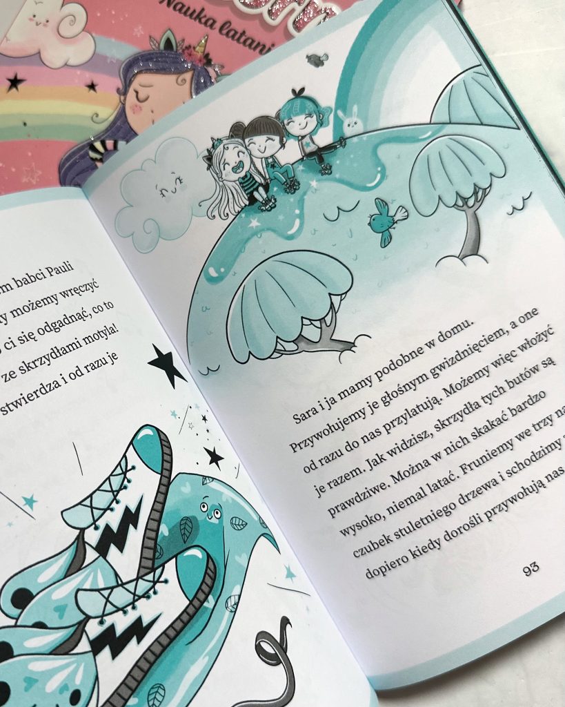 Pierwsze dni w szkole magii to dla Klaudii sporo emocji. Przypadkowo doprowadza do wybuchu na lekcji eliksirów, poznaje nowe przyjaciółki i musi zaliczyć sprawdzian z latania na jednorożcu. Z tym ostatnim wiąże się szczególna presja, bo jeśli go nie zda, zostanie przeniesiona klasę niżej. Tylko jak to zrobić, gdy człowiek boi się latać? Sprawdźcie sami, ja tylko zapewnię, że „Nauka latania” to lekcja odnajdywania w sobie odwagi oraz wzajemnego wsparcia.