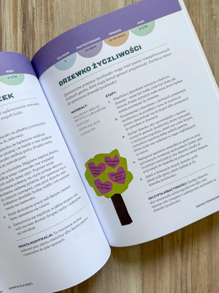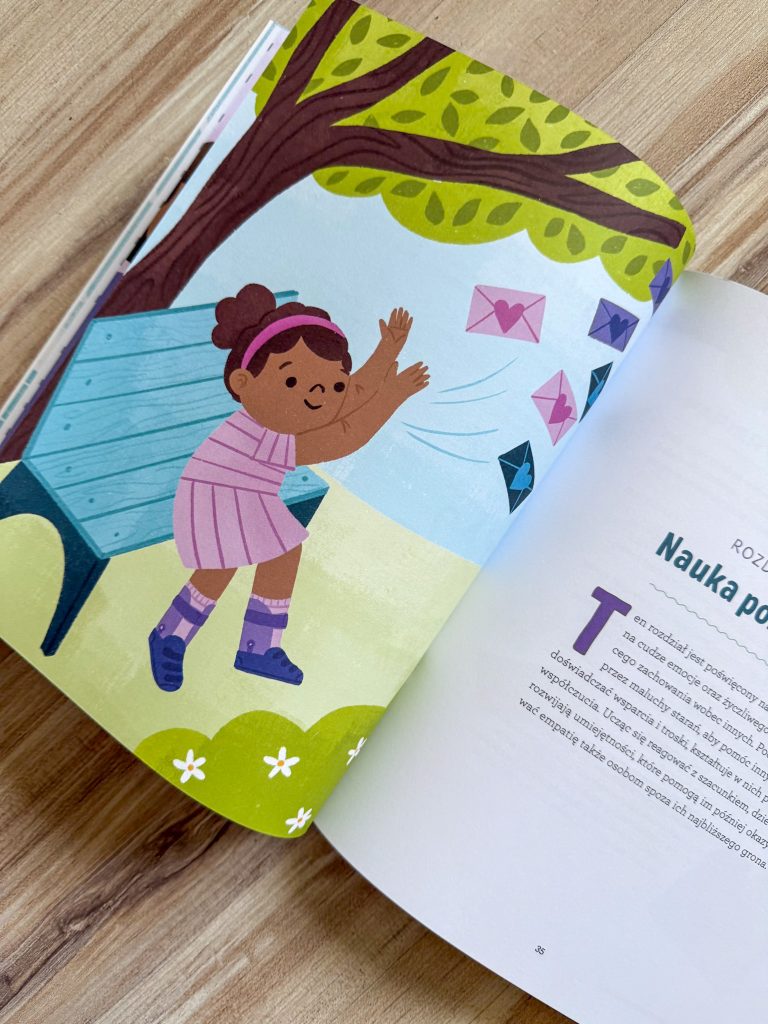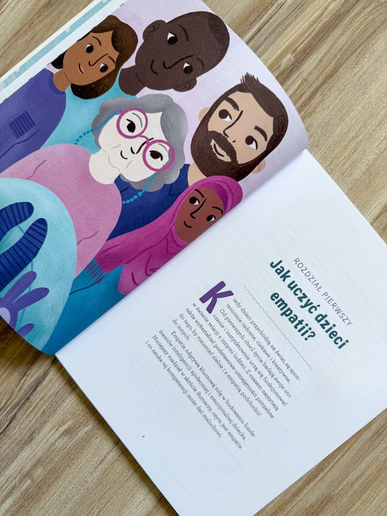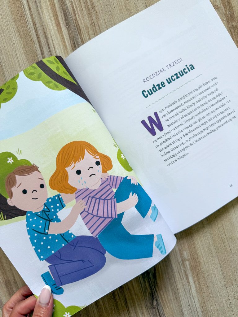 Pierwszy rozdział skupia się na rozwijaniu w dzieciach świadomości swoich własnych emocji, w kolejnym maluchy uczą się obserwować, rozumieć i szanować uczucia innych. Następny to nauka patrzenia na świat z perspektywy drugiego człowieka, później – nauka pomagania, aż docieramy do zabaw, które uczą dzieci okazywania empatii i współczucia ludziom, którzy są od nich inni.