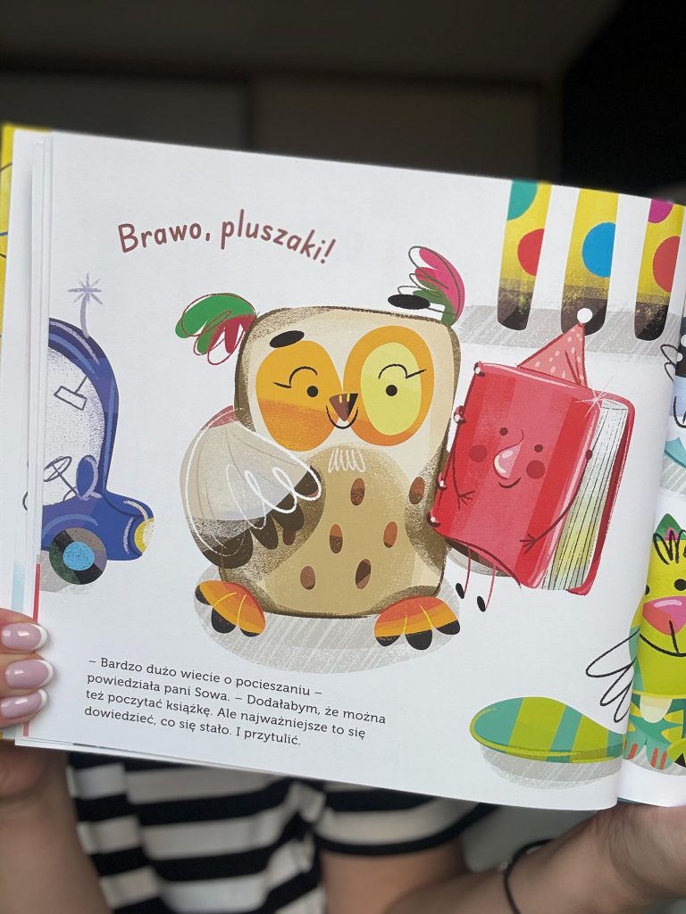 Bo właśnie tego uczą się przytulanki w swoim przedszkolu! Tego, że każdy z nas jest inny i może potrzebować innego rodzaju pocieszenia. Że przytulenie nie jest jedynym sposobem na czyjeś smutki. Można na przykład zaśpiewać komuś piosenkę, zaproponować coś do jedzenia, poczytać książkę albo dać przestrzeń do pobycia samemu, jeśli właśnie tego ktoś potrzebuje. Najważniejsza jest jednak rozmowa. Czasami samo pytanie „Co się stało? Dlaczego jesteś smutny albo zły?” może zdziałać cuda.