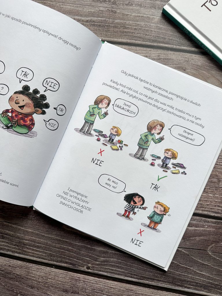 „Nie mów tak do mnie” to kolejna, po „Jesteśmy dla siebie dobrzy” i „To twoje ciało”, książka autorki, którą całym sercem polecam! Uświadomi, wesprze i nauczy. Pomoże naszym dzieciom wzrastać w szacunku do innych i siebie.