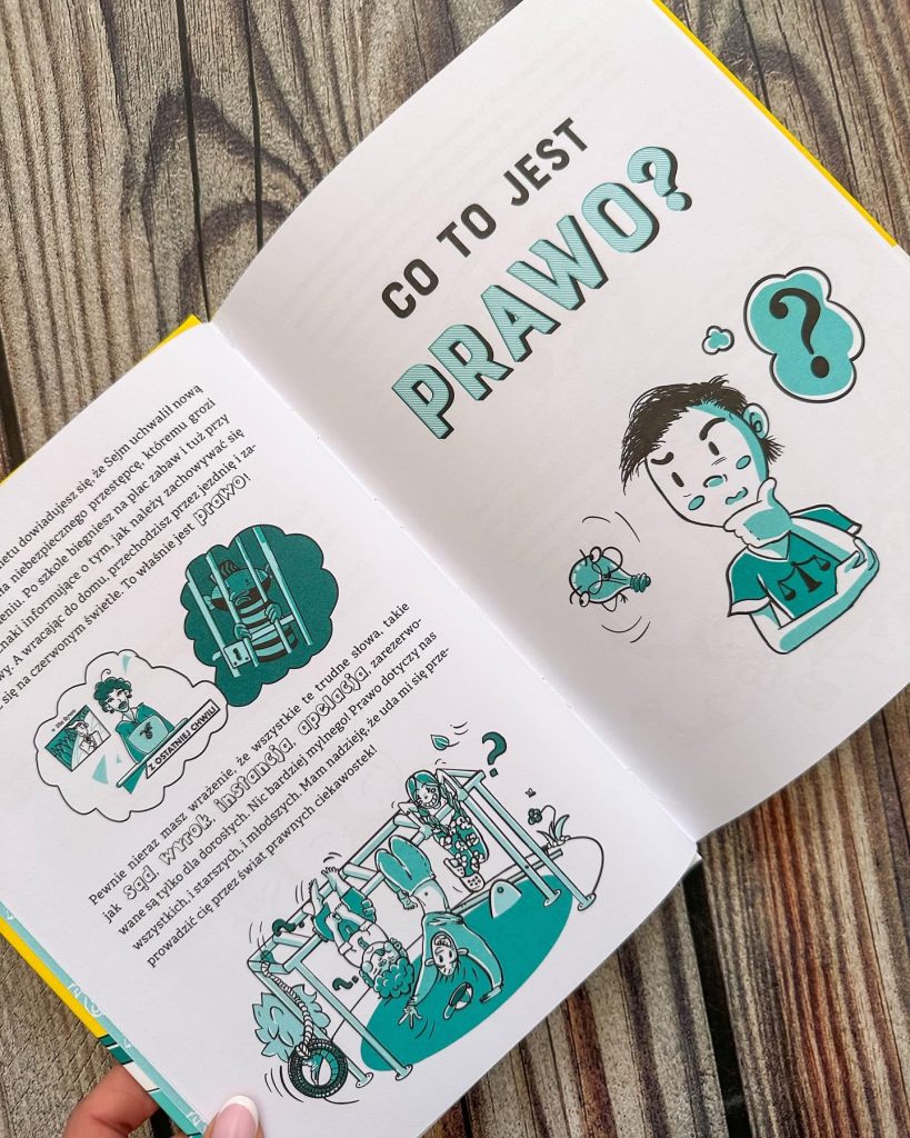 A wszystko to robi przejrzystym językiem z wykorzystaniem zrozumiałych porównań (paremie jako magiczne zaklęcia, dziedziny prawa – gałęzie drzewa). Są tu też aktywizujące pytania, tworzenie własnego regulaminu klasy, a nawet dyplom!