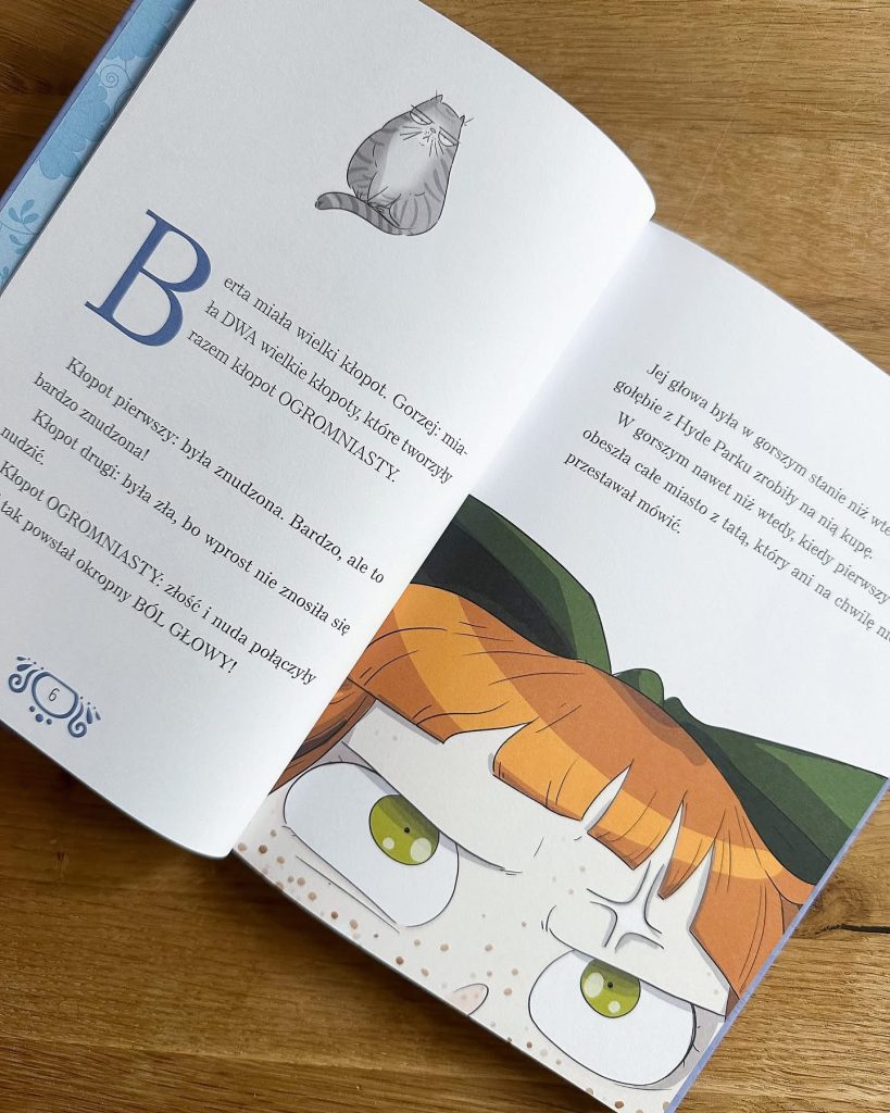 Berta ma 9,5 lat i tyle na głowie, że i Wy dostalibyście migreny. Po pierwsze – bogatą, zadzierającą nosa rodzinę. Po drugie – nieprzyjemną nauczycielkę haftu i tańca. Po trzecie – okropnego przyszłego męża Waltera, który układa dla niej romantyczne wiersze (tak, tak, londyńska arystokracja planowała śluby dzieci już od kołysek). A po czwarte – nudę i złość na wszystko powyższe, bo Berta wcale, a wcale nie była typową „lady”.