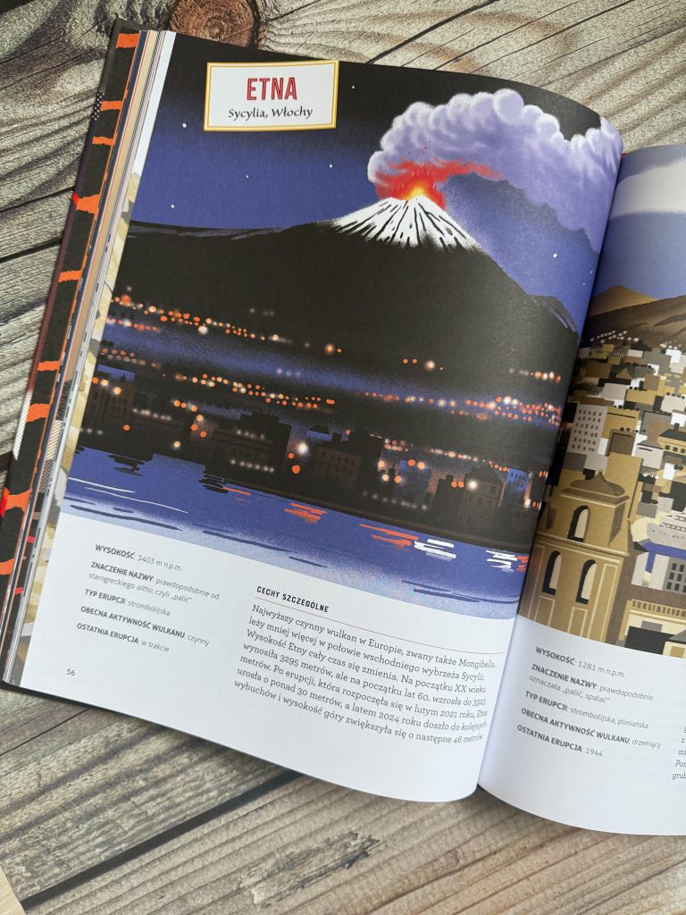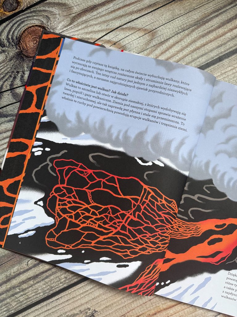 Wulkany – jedne z najbardziej niezwykłych, a jednocześnie najgroźniejszych zjawisk przyrodniczych, niezmiennie fascynują dzieci! Wiem to, chociażby po ilości próśb o polecenie kolejnej, „wulkanicznej” książki. Dlatego, tak cieszę, że biblioteczka młodych pasjonatów, będzie mogła powiększyć się o nowy tytuł! Obszerny, wielkoformatowy, po brzegi wypełniony wiedzą i różnymi ciekawostkami, związanymi z tematem wulkanów. Fantastycznie zilustrowany i pozostawiający czytelnika z uczuciem sytości wiedzy.