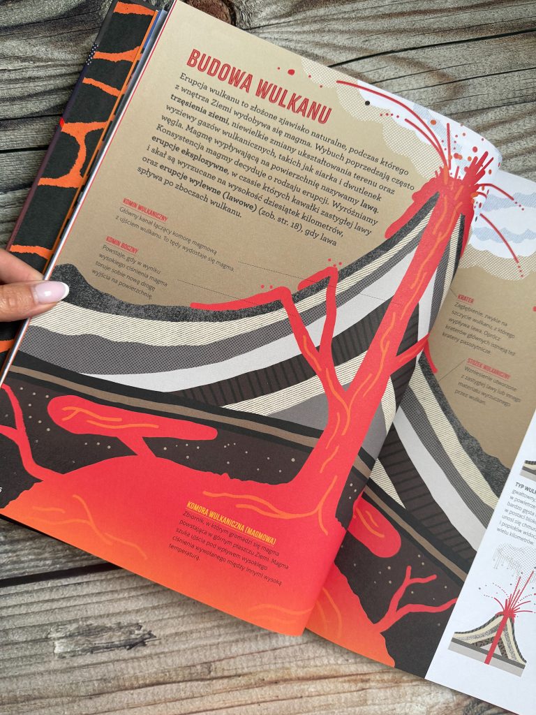 Wiecie, że w chwili, w której publikuję ten post, trwa właśnie erupcja wulkanu Kilauea na Hawajach? To jeden z najbardziej aktywnych wulkanów na naszej planecie, a w książce, którą mam dla Was dzisiaj, poświęcono mu całą stronę. Podobnie zresztą, jak wulkanowi Merapi w Indonezji, który wybuchł w czerwcu, wyrzucając lawę, gazy i popiół na wysokość 5 kilometrów!